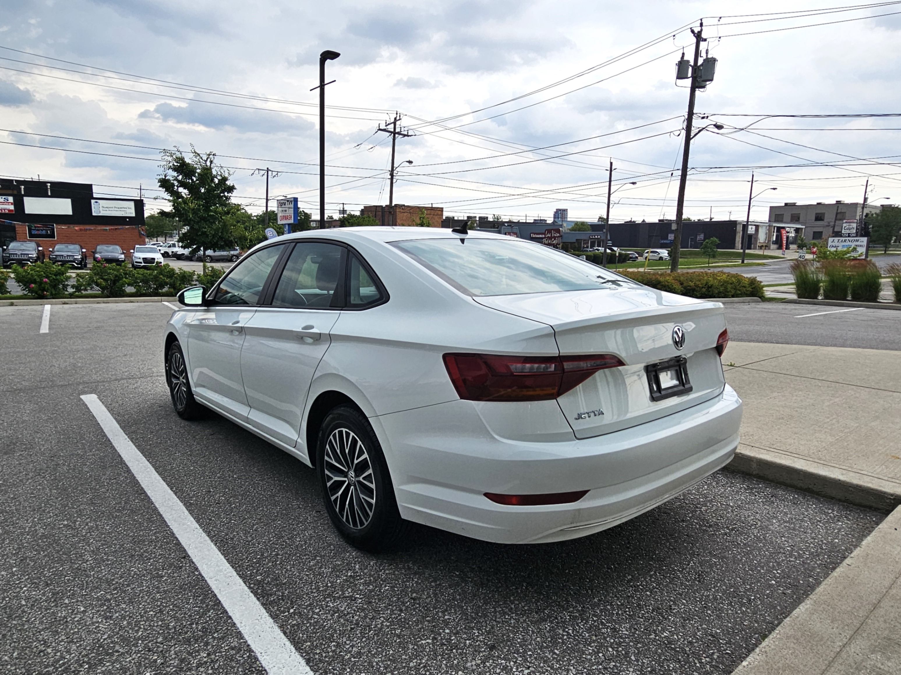 2019 VW Jetta SEL, 1.4L engine, Automatic, White on Black leather interior.