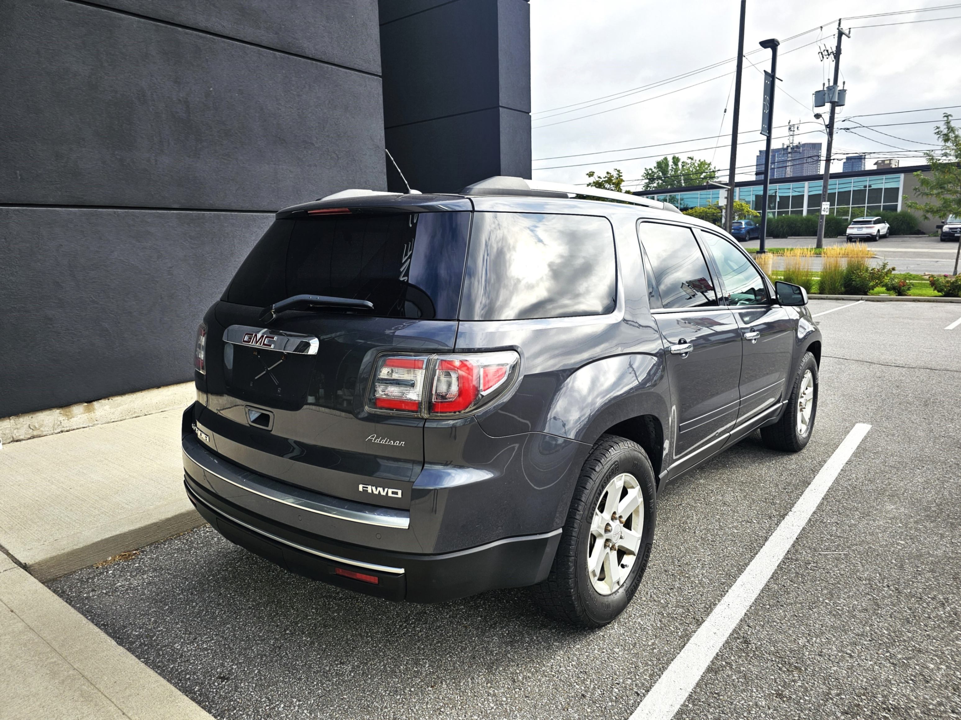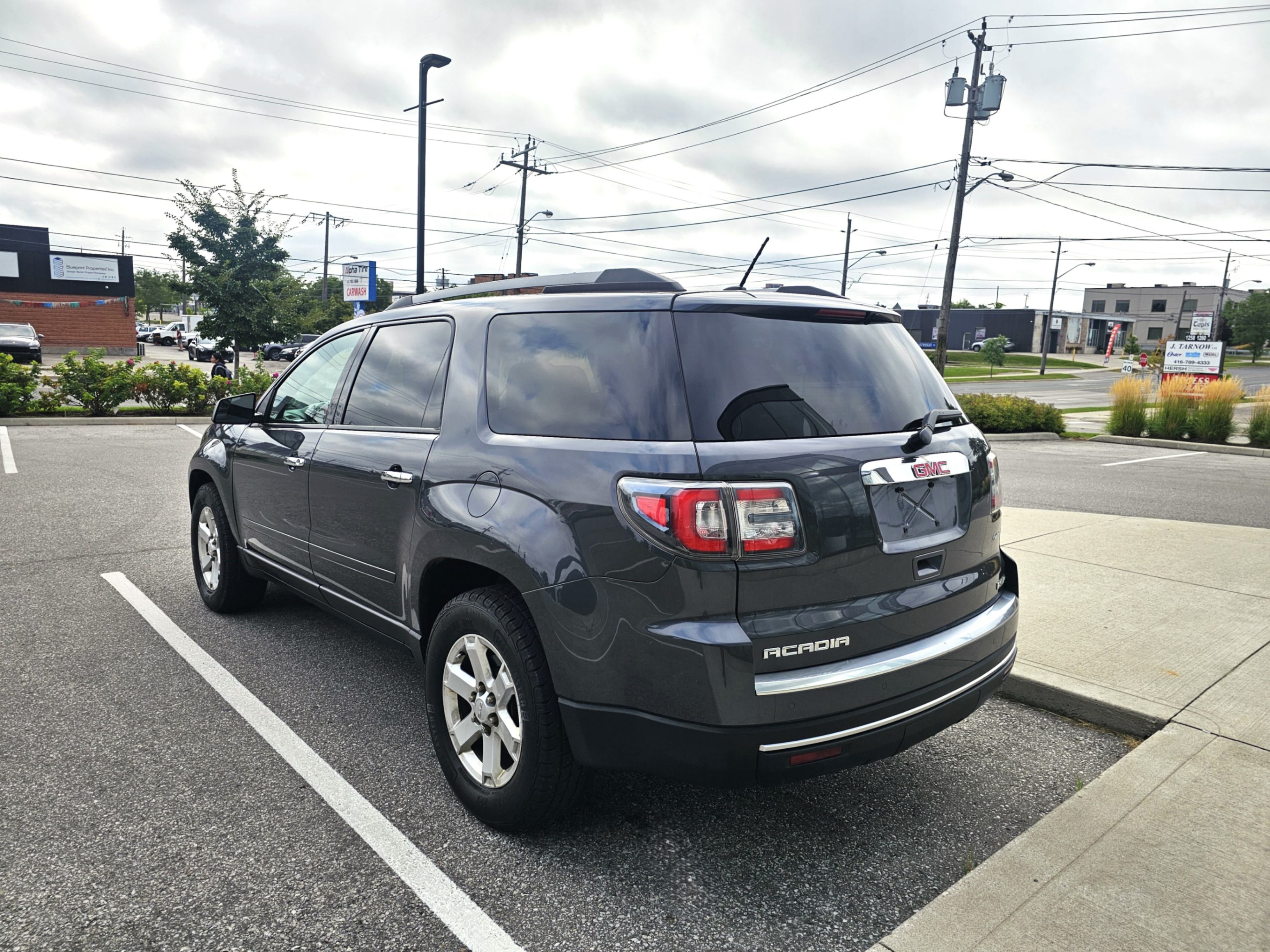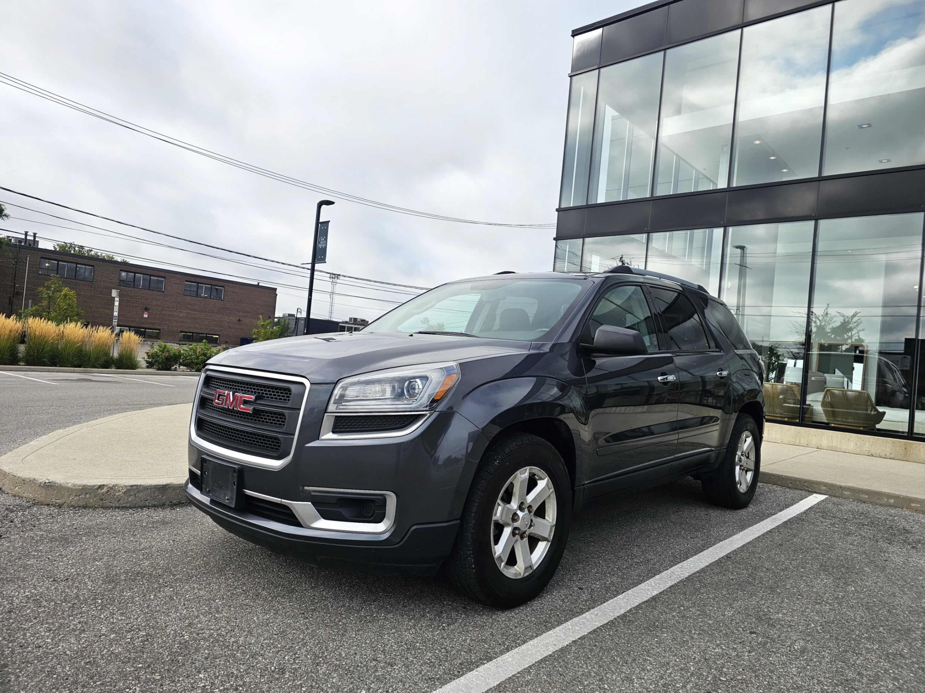 2014 GMC Acadia AWD, 3.6L V6 engine. Grey on Black cloth interior.