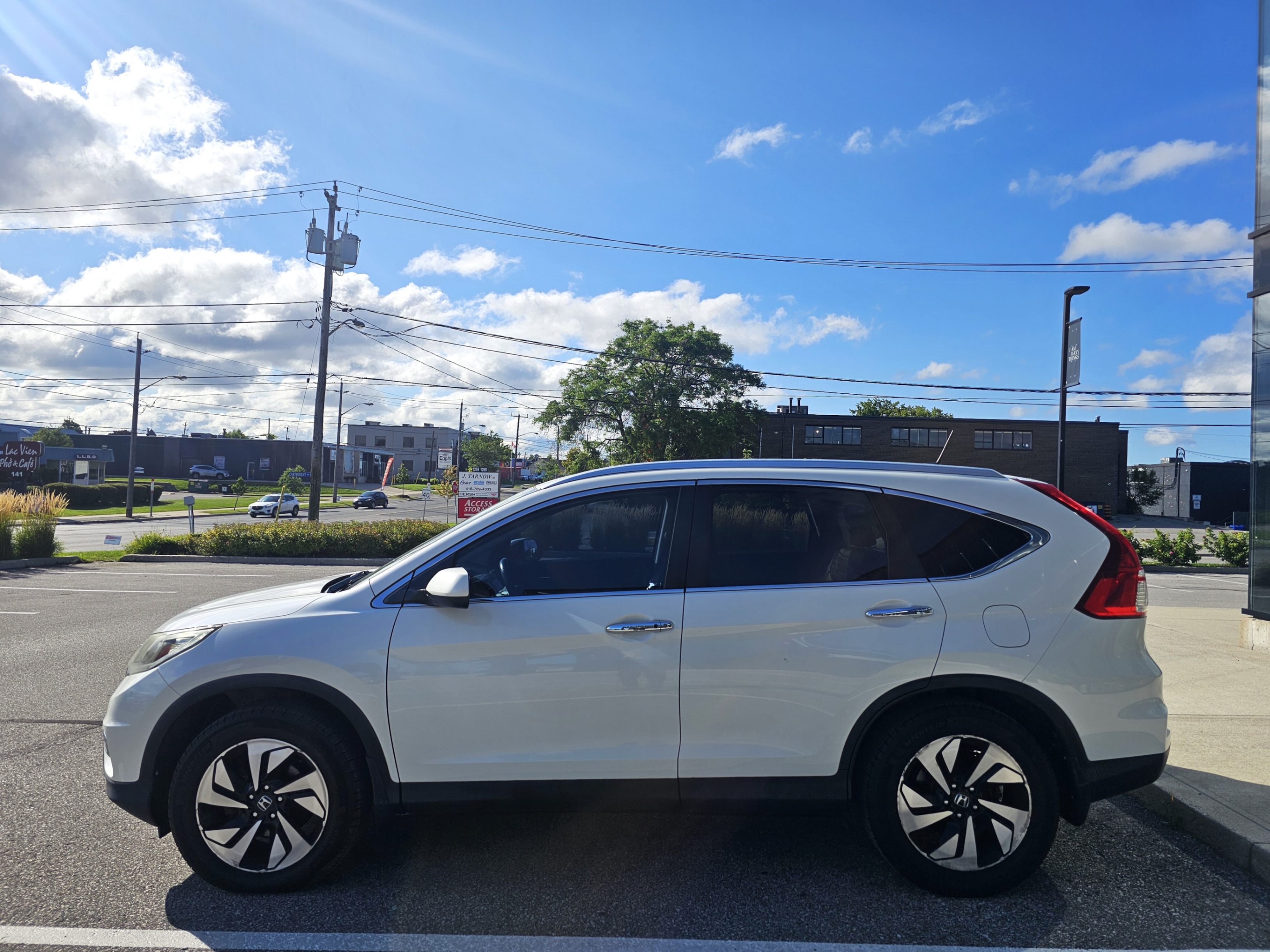2015 Honda CRV touring, 2.4L, auto transmission, White on Black leather interior, Cold AC, tinted windows, Power Brake, CD Player, Power Steering and more to list.... good condition, no rust, runs great.